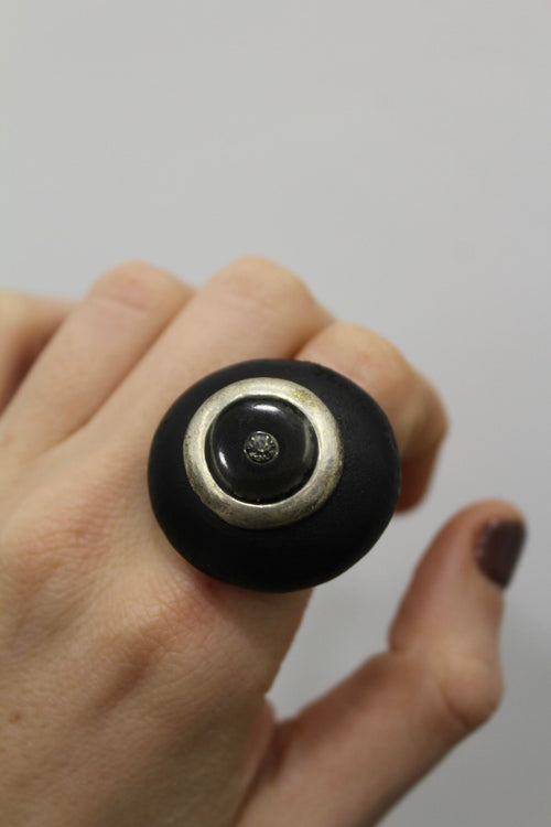 Bolso vintage tipo clutch de plumeti gris y negro -